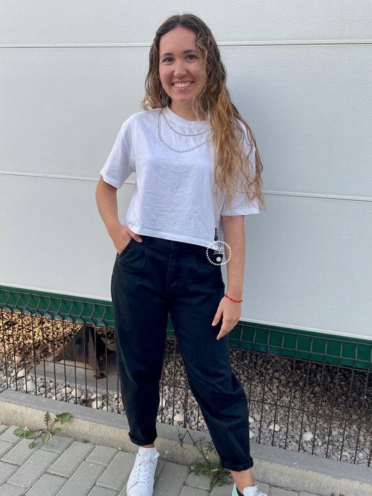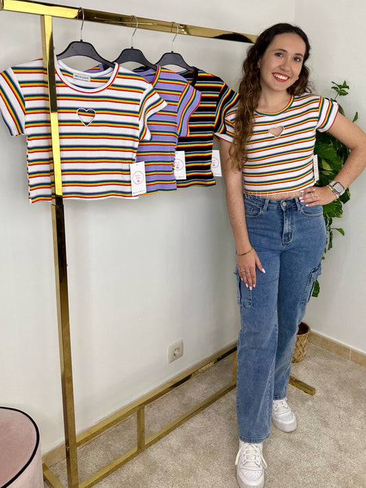 T-shirt com padrão animal e brilhantes na gola e nas mangas