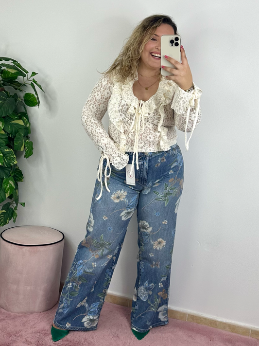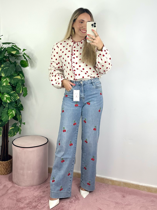 Calças brancas com folhinhos e cereja (cinto incluído)