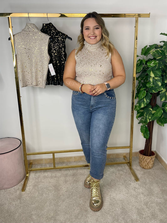 Camisola de malha com efeitos dourados