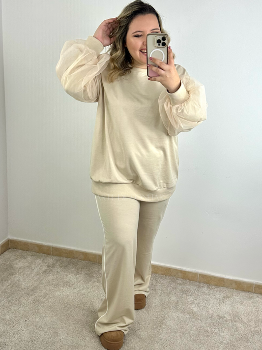 Camisola bege com manga tule 🇵🇹