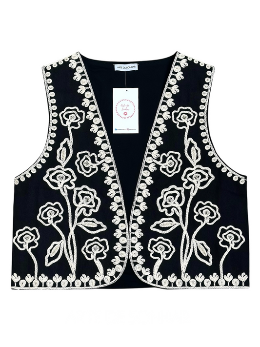 EsgotadoColete preto com bordados