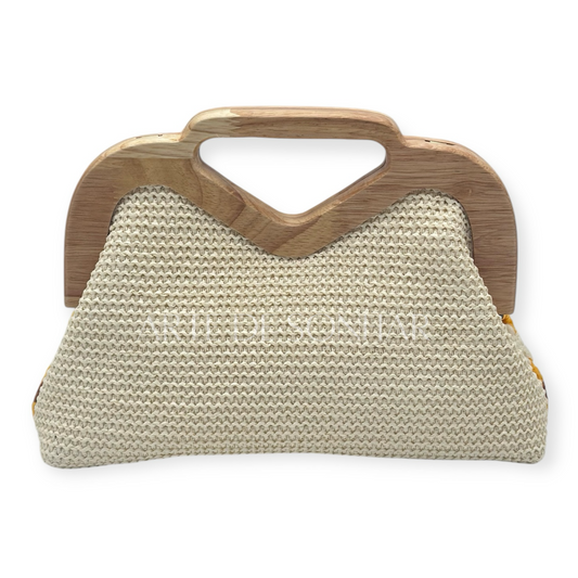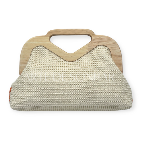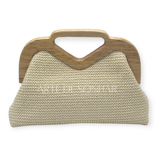 Mala estilo porta moedas em ráfia com renda branca e polipele