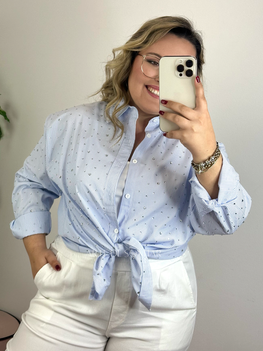 Camisa de riscas com cristais azul clara