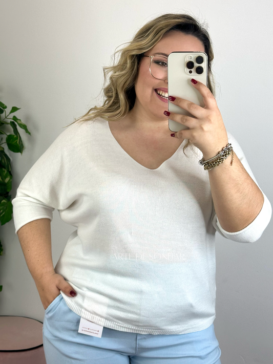 Camisola com manga a três quartos branca