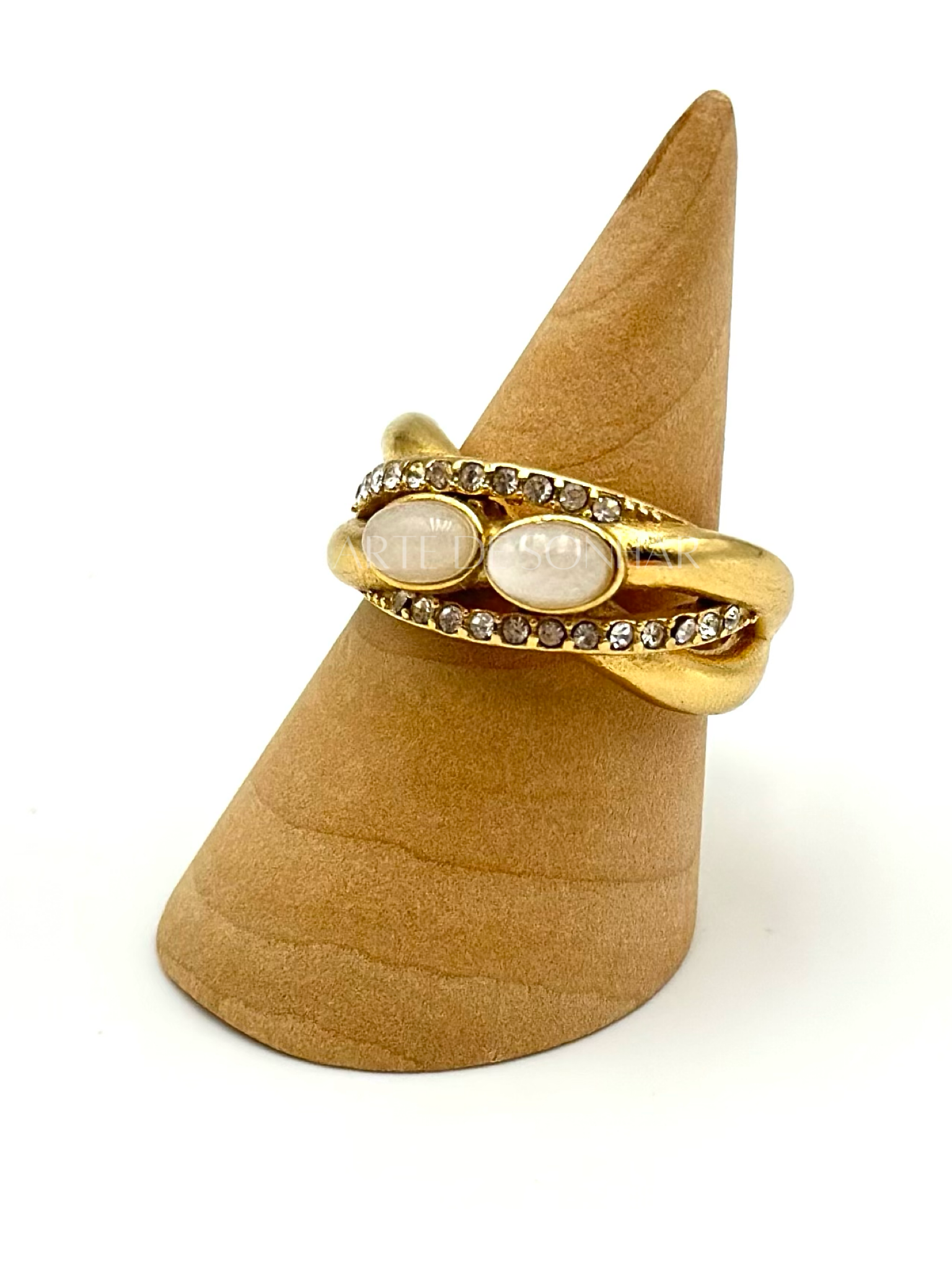 Anel dourado entrançado com cristais e pedras