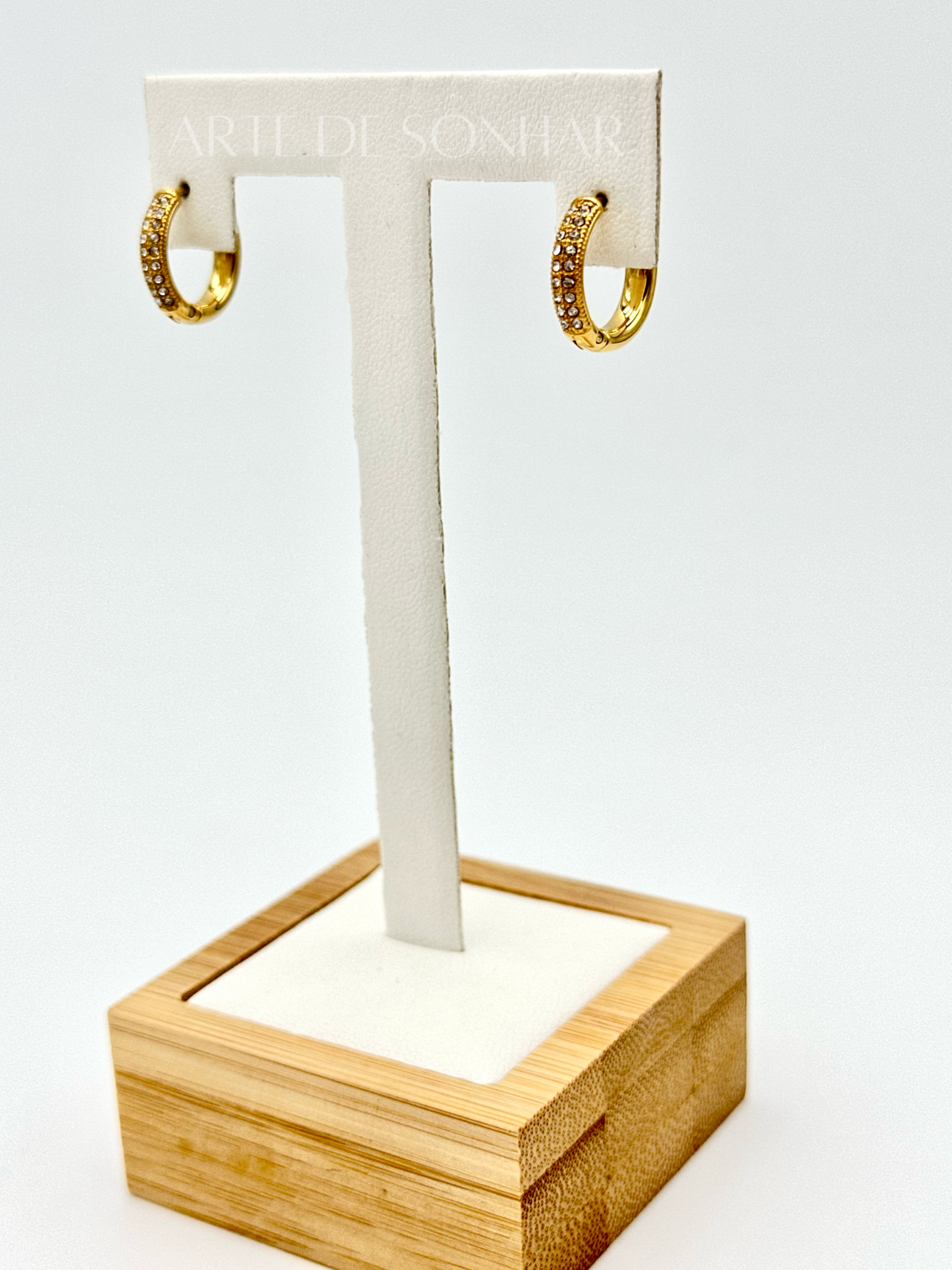 Brincos argolas douradas com brilhantes (1,5 cm)