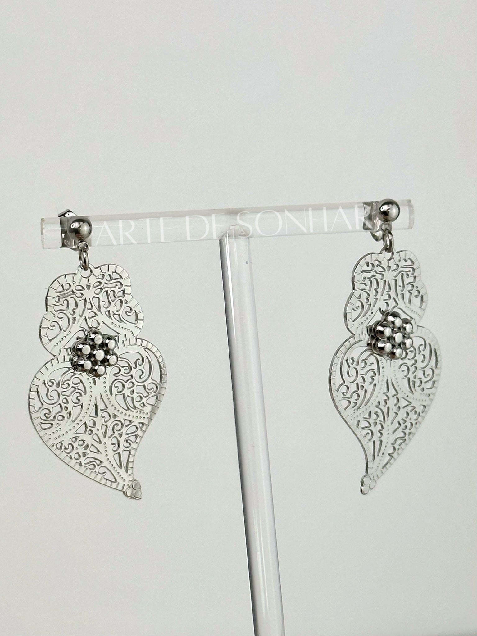 Brincos coração de Viana trabalhado prateado