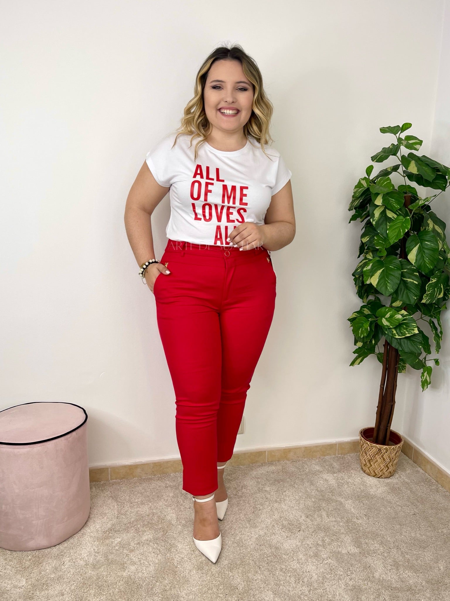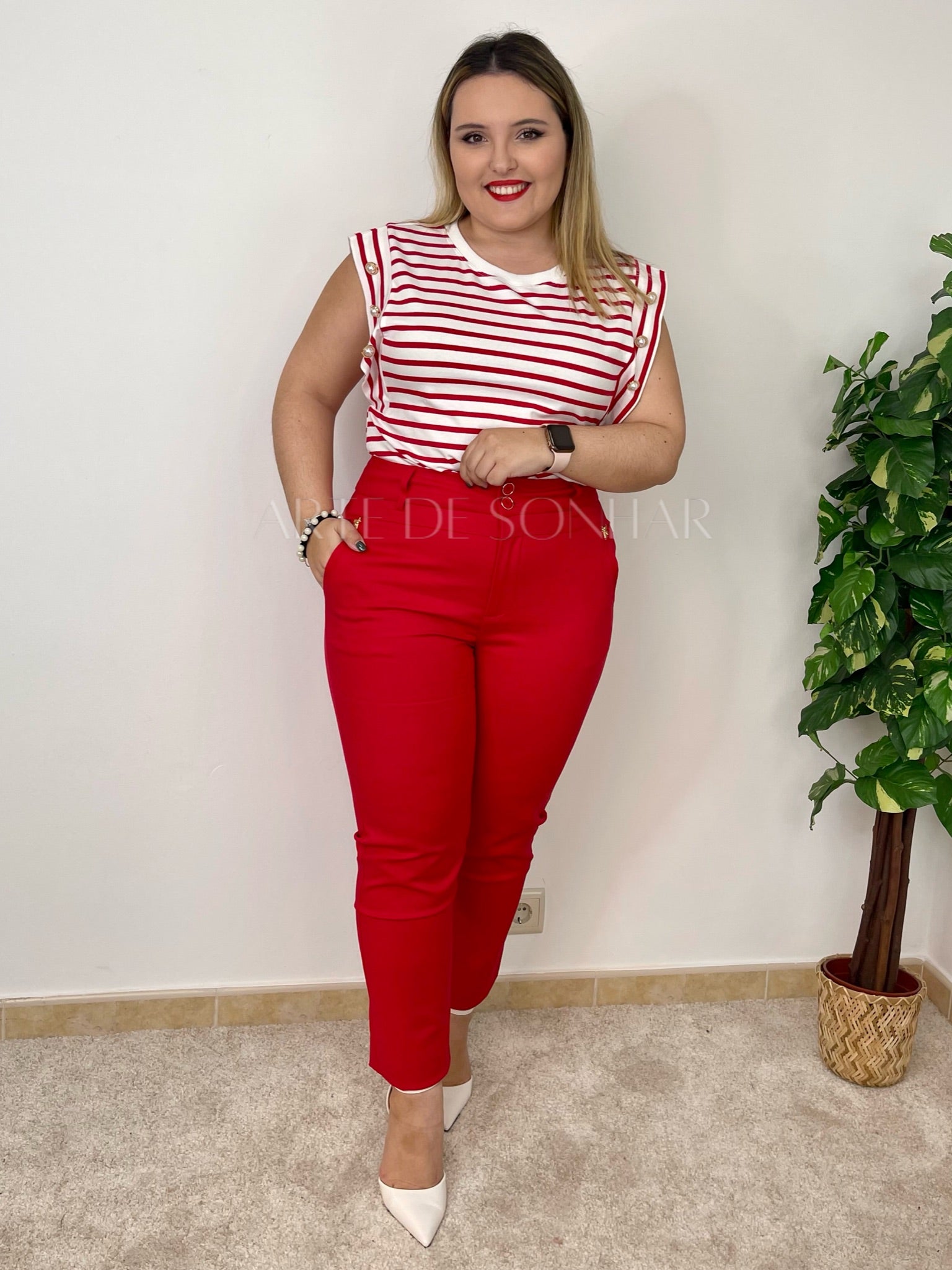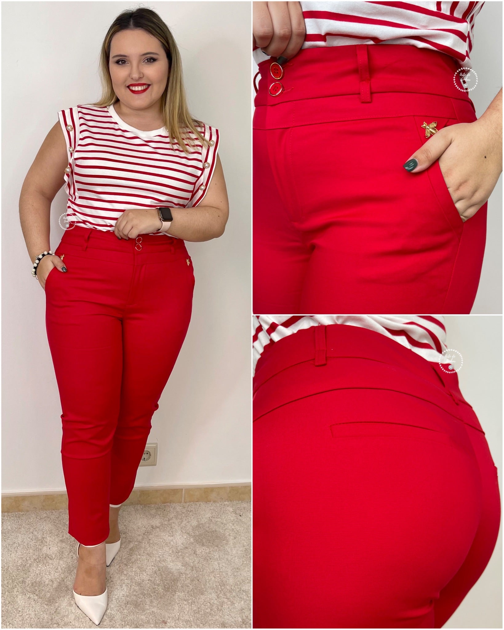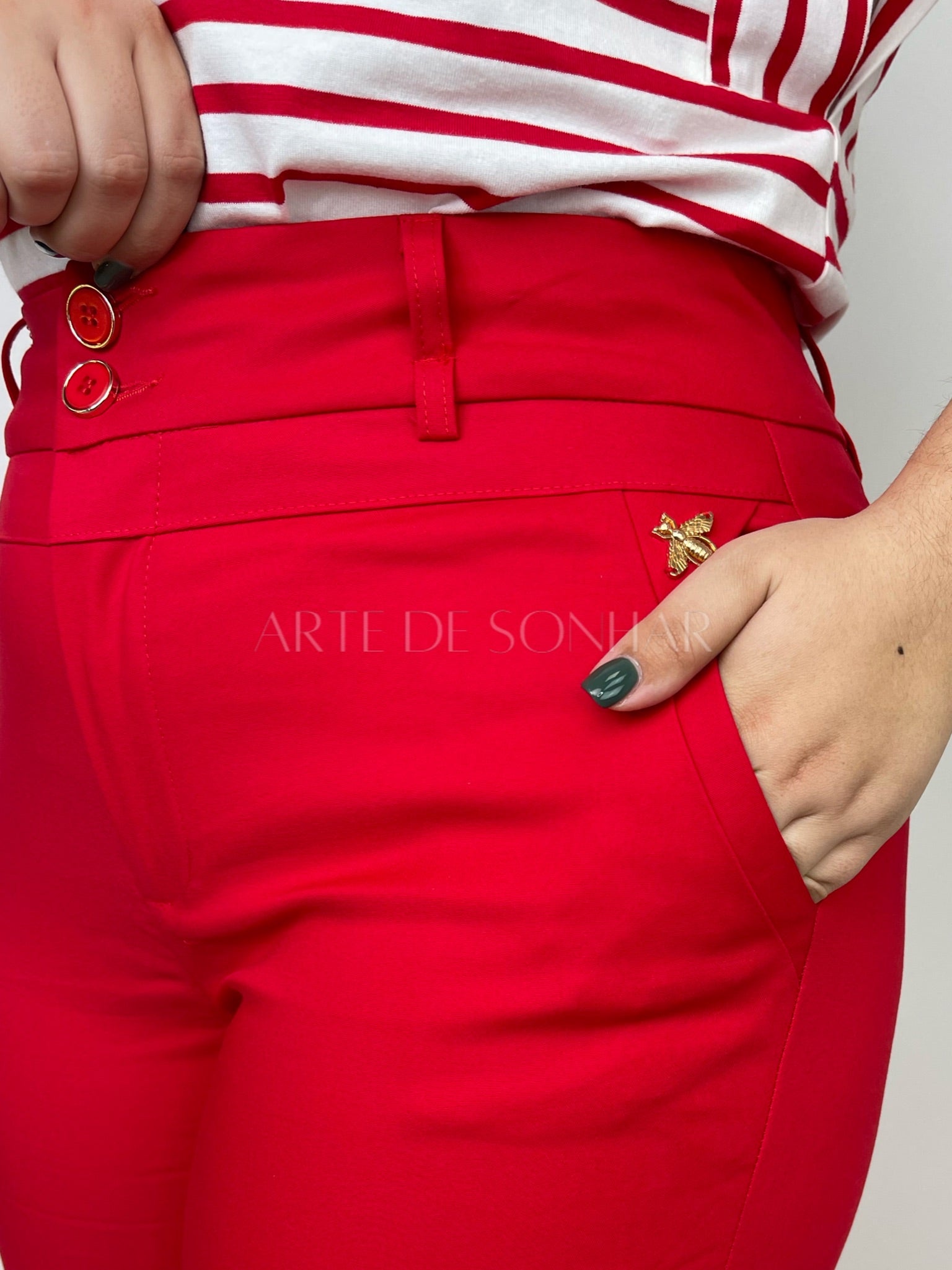 Calças da abelha vermelhas