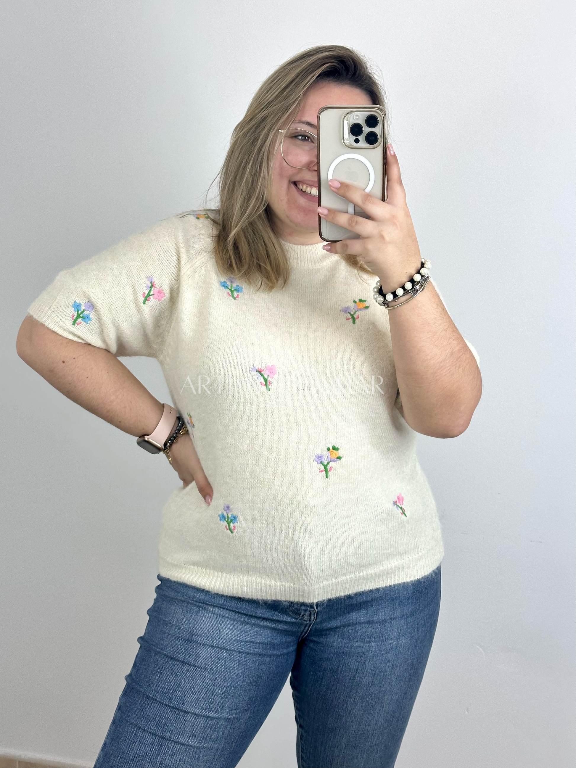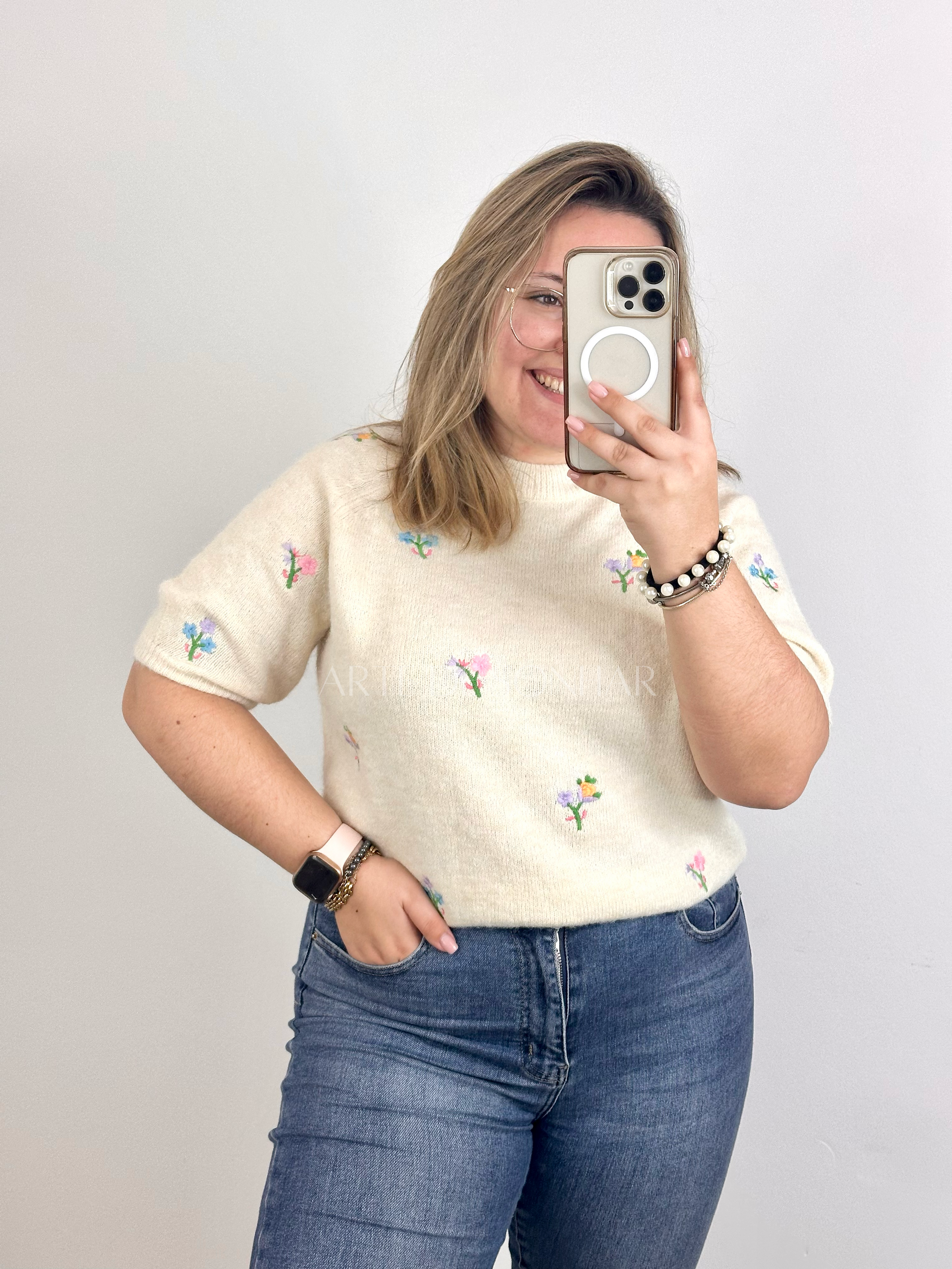 Camisola com flores bordadas
