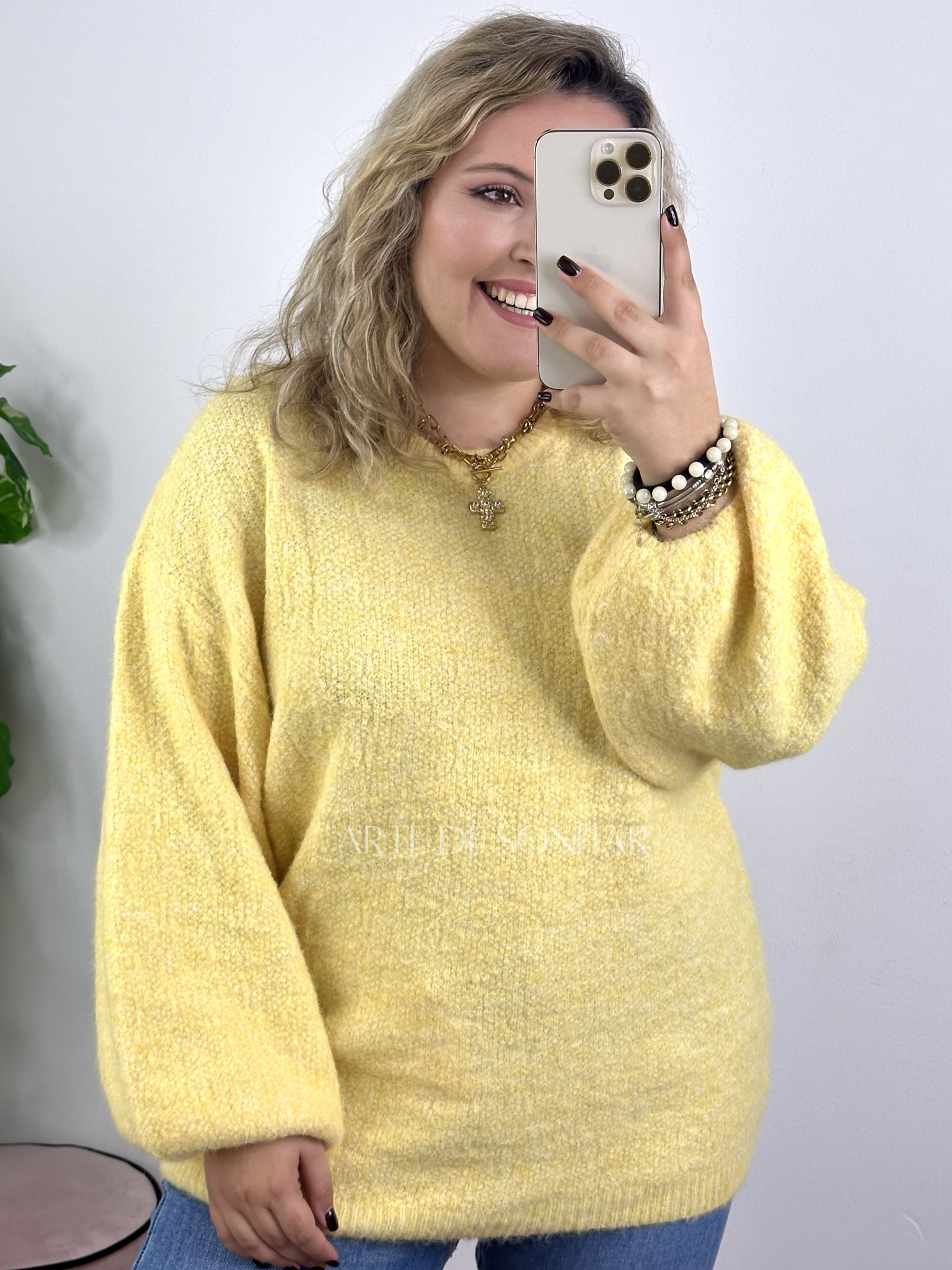 Camisola de malha amarela oversize