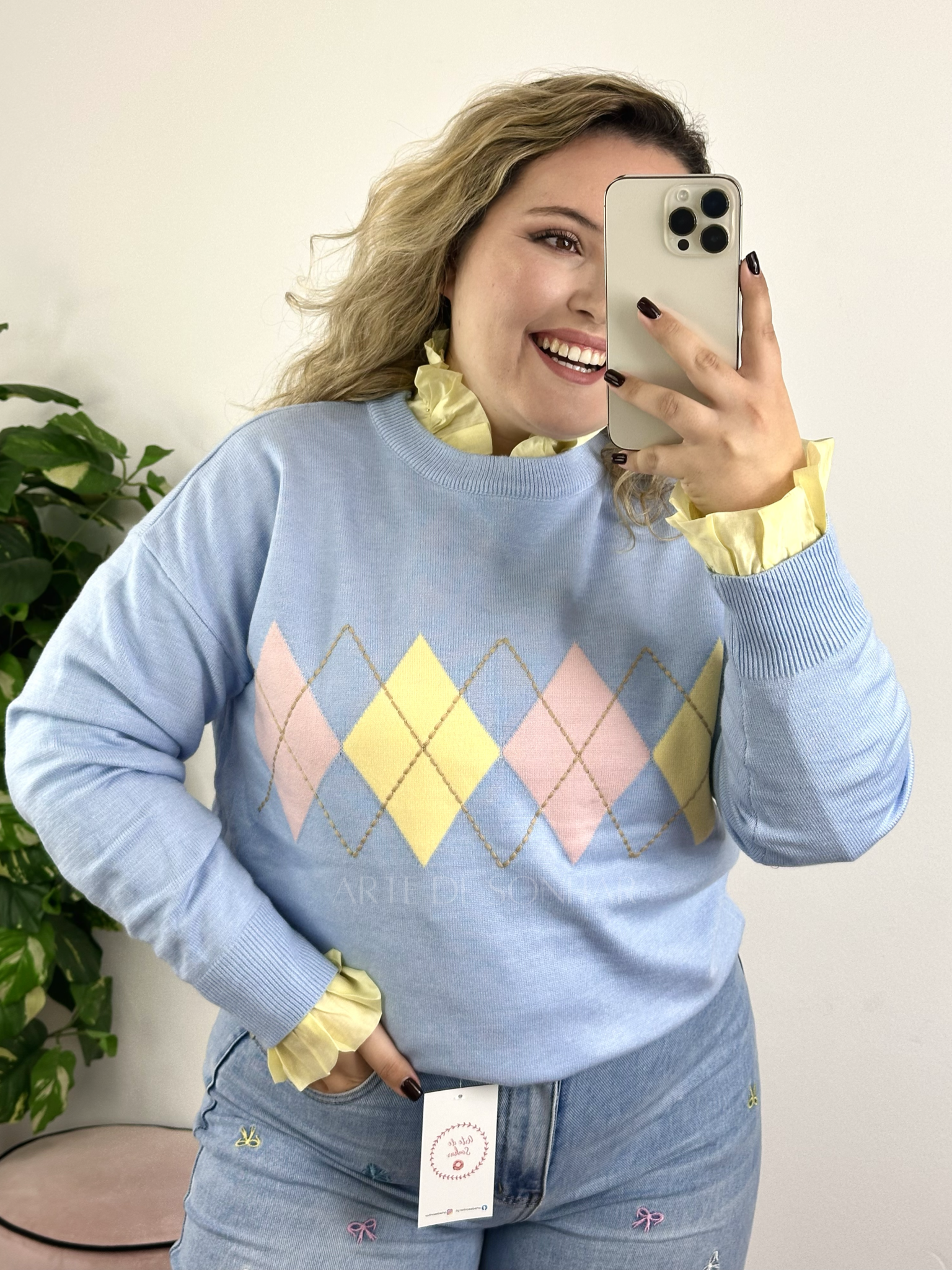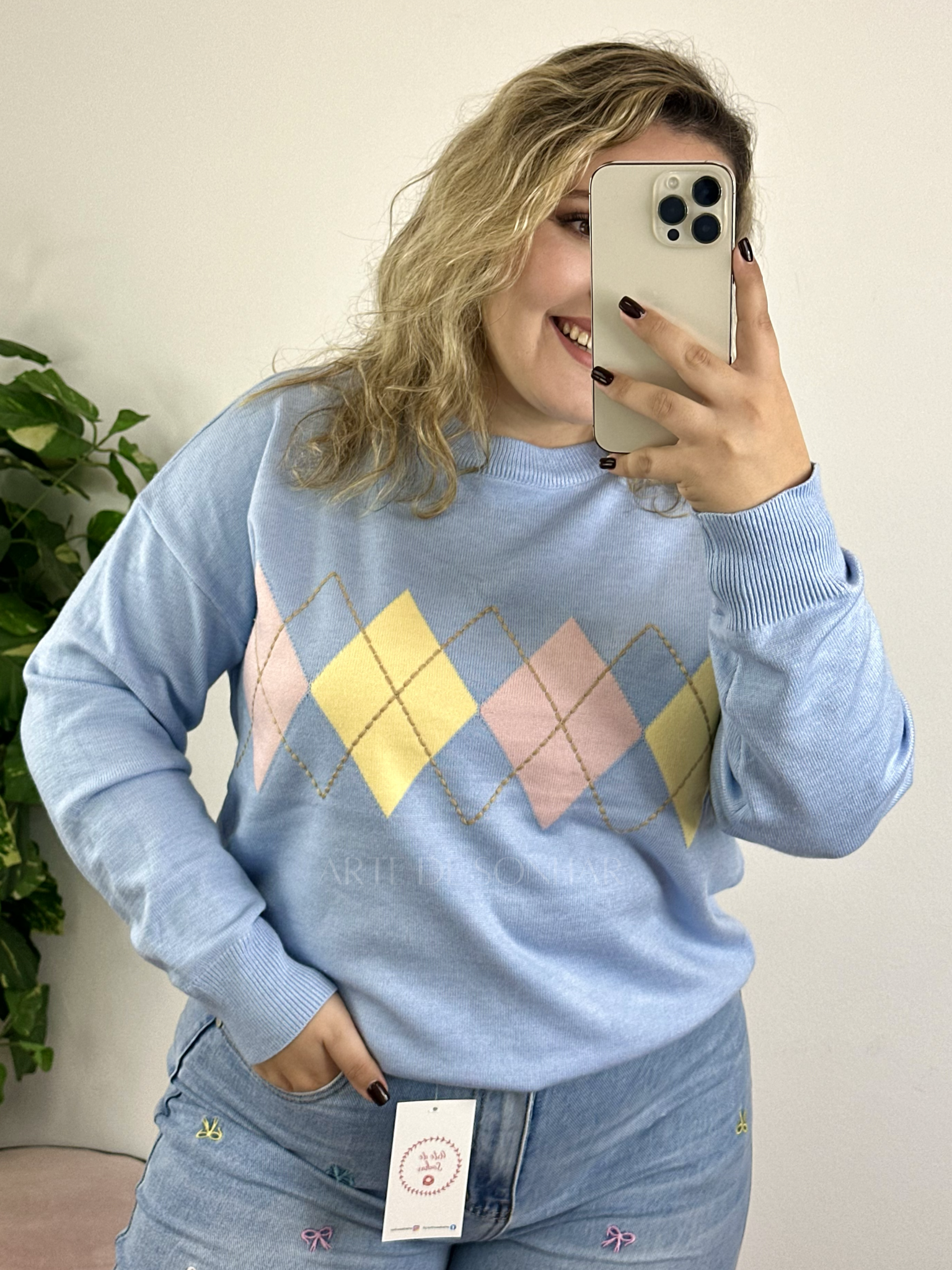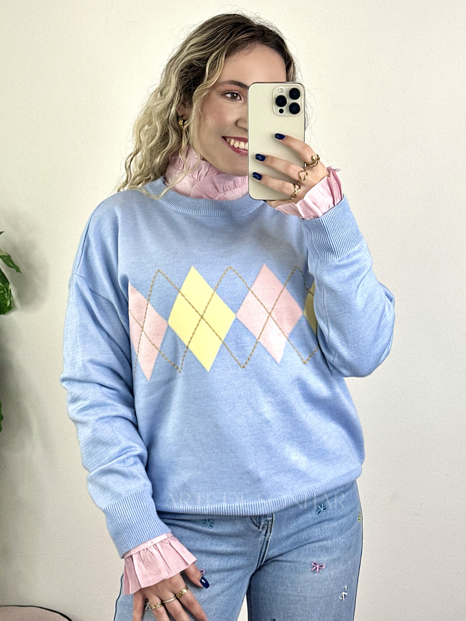 Camisola dos losangos azul