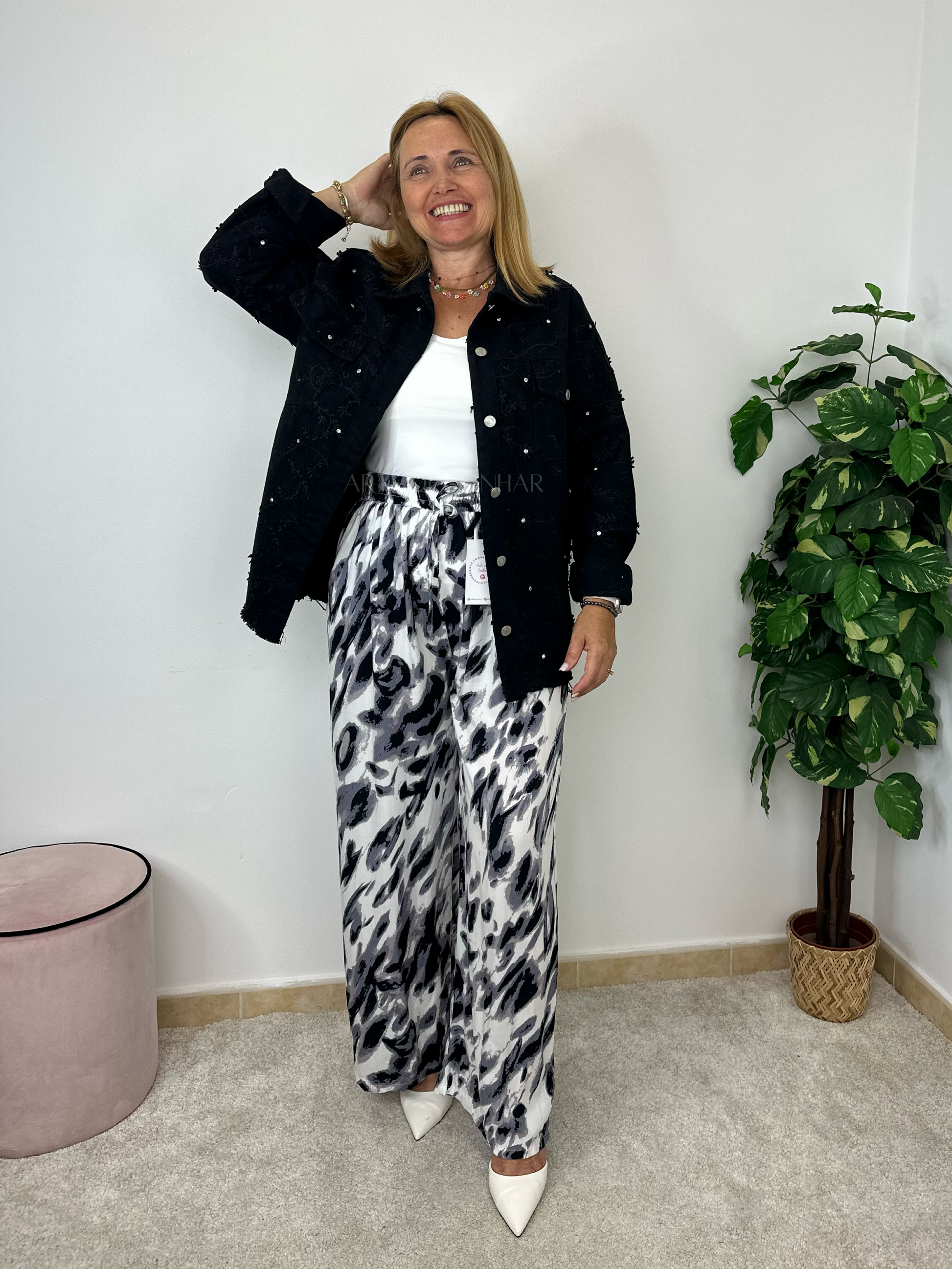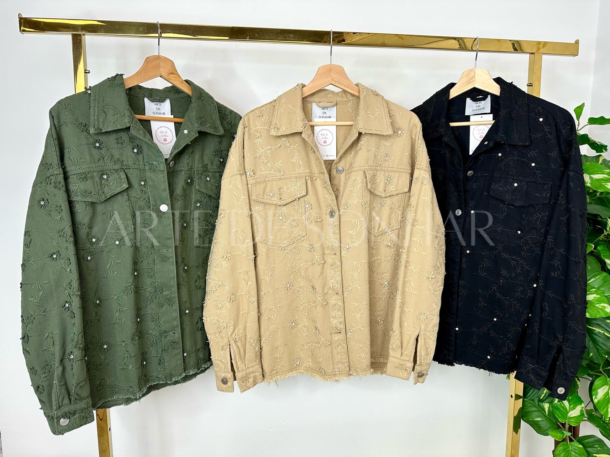 Casaco com flores e cristais