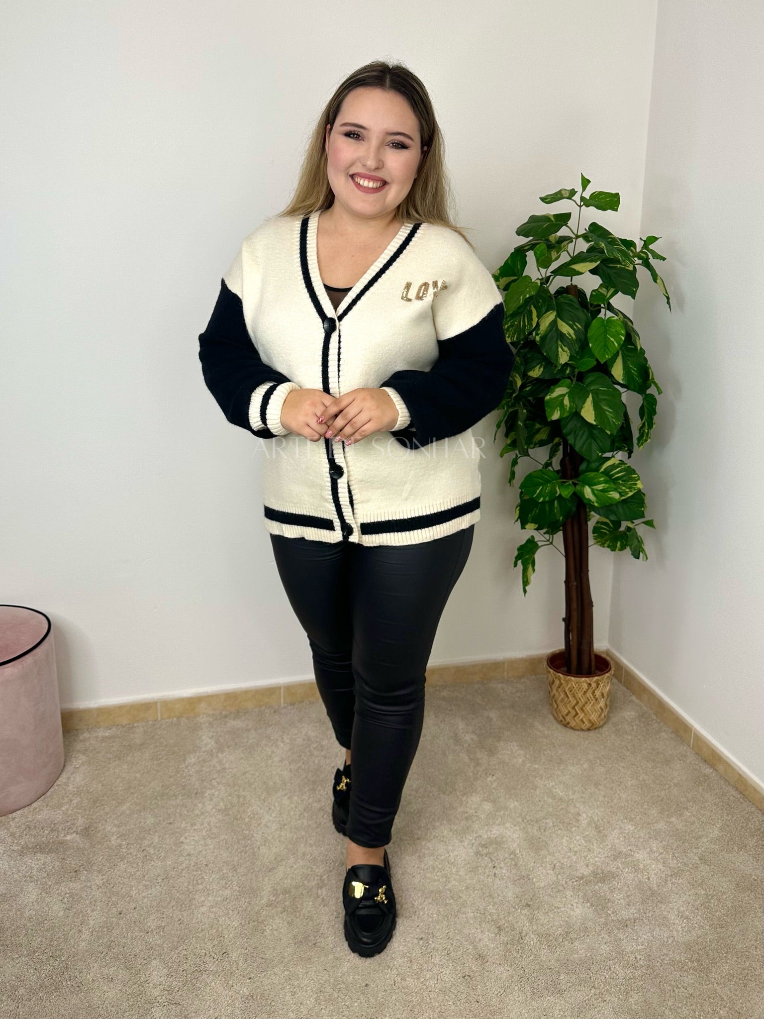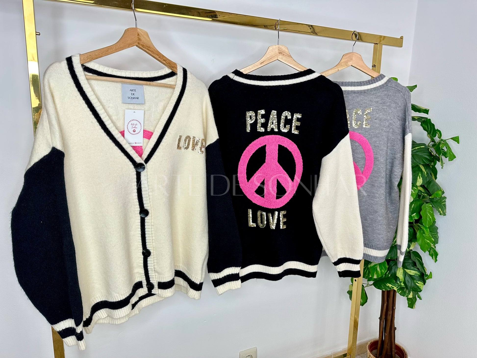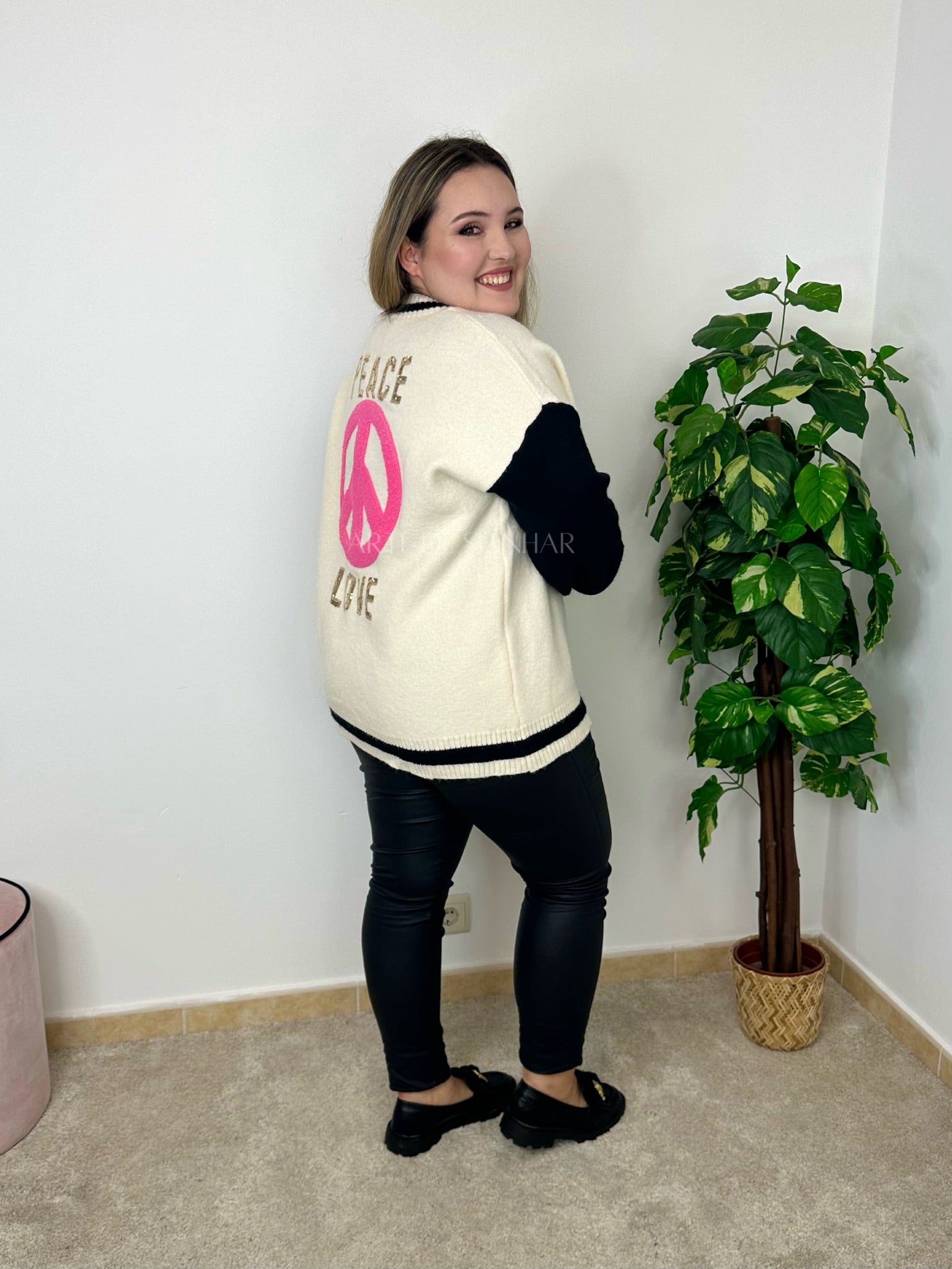 Casaco de malha com "peace and love”