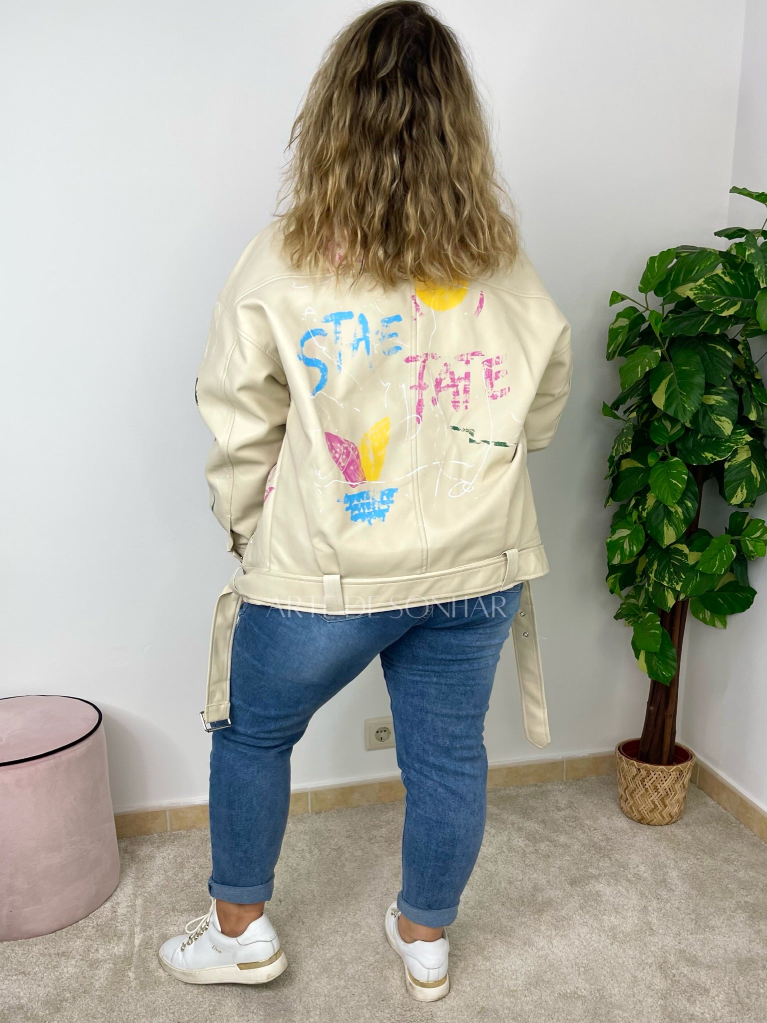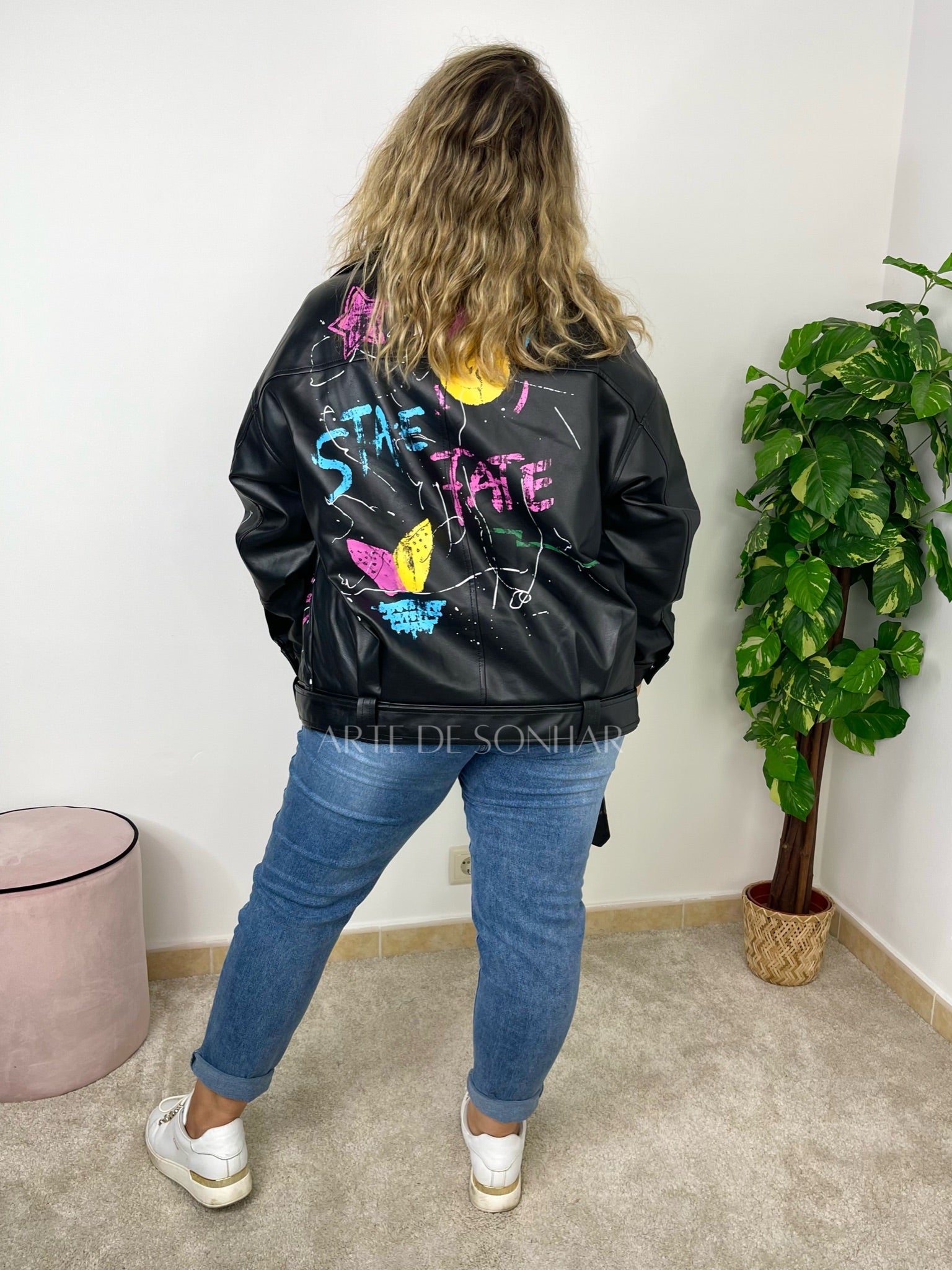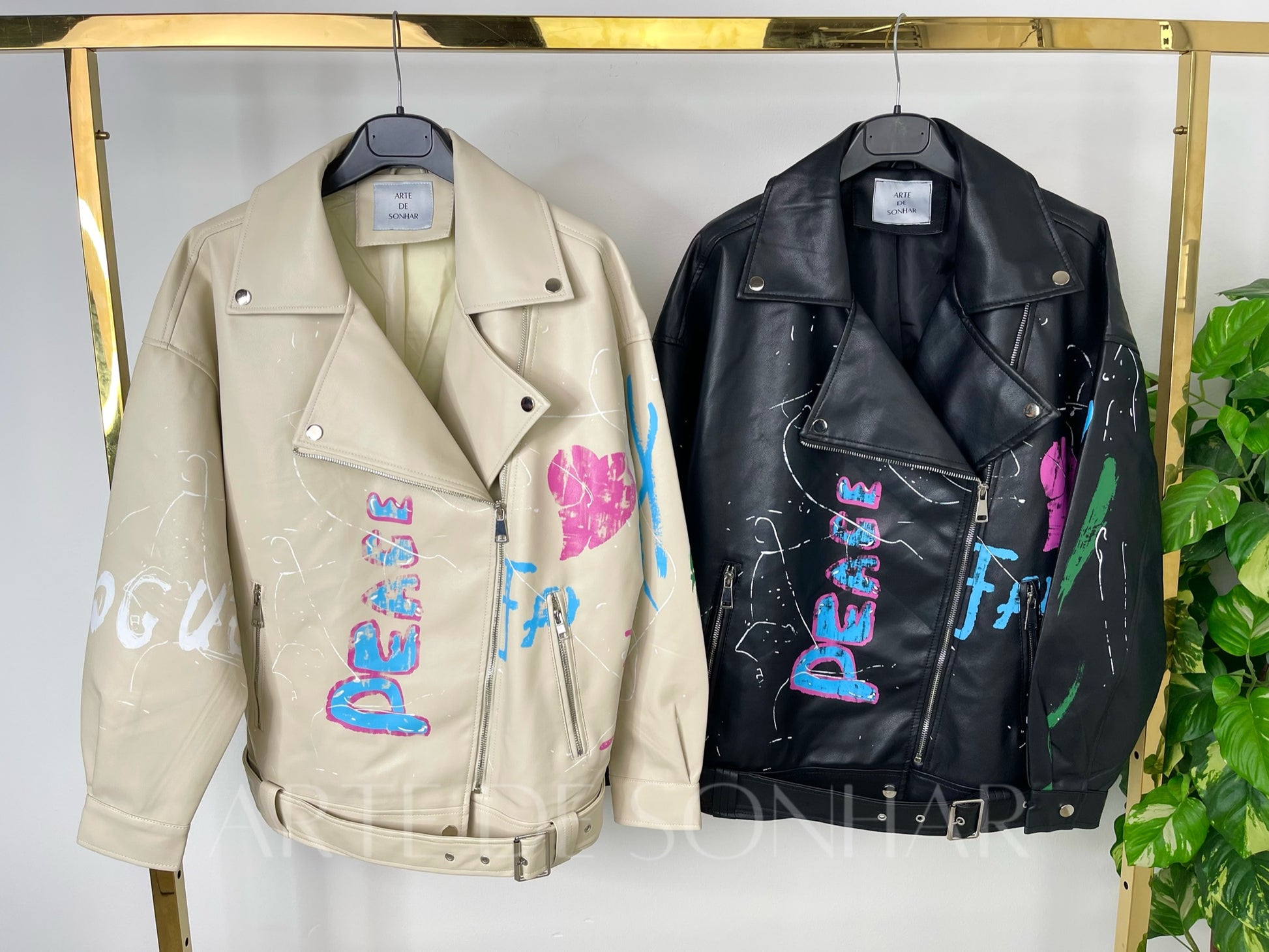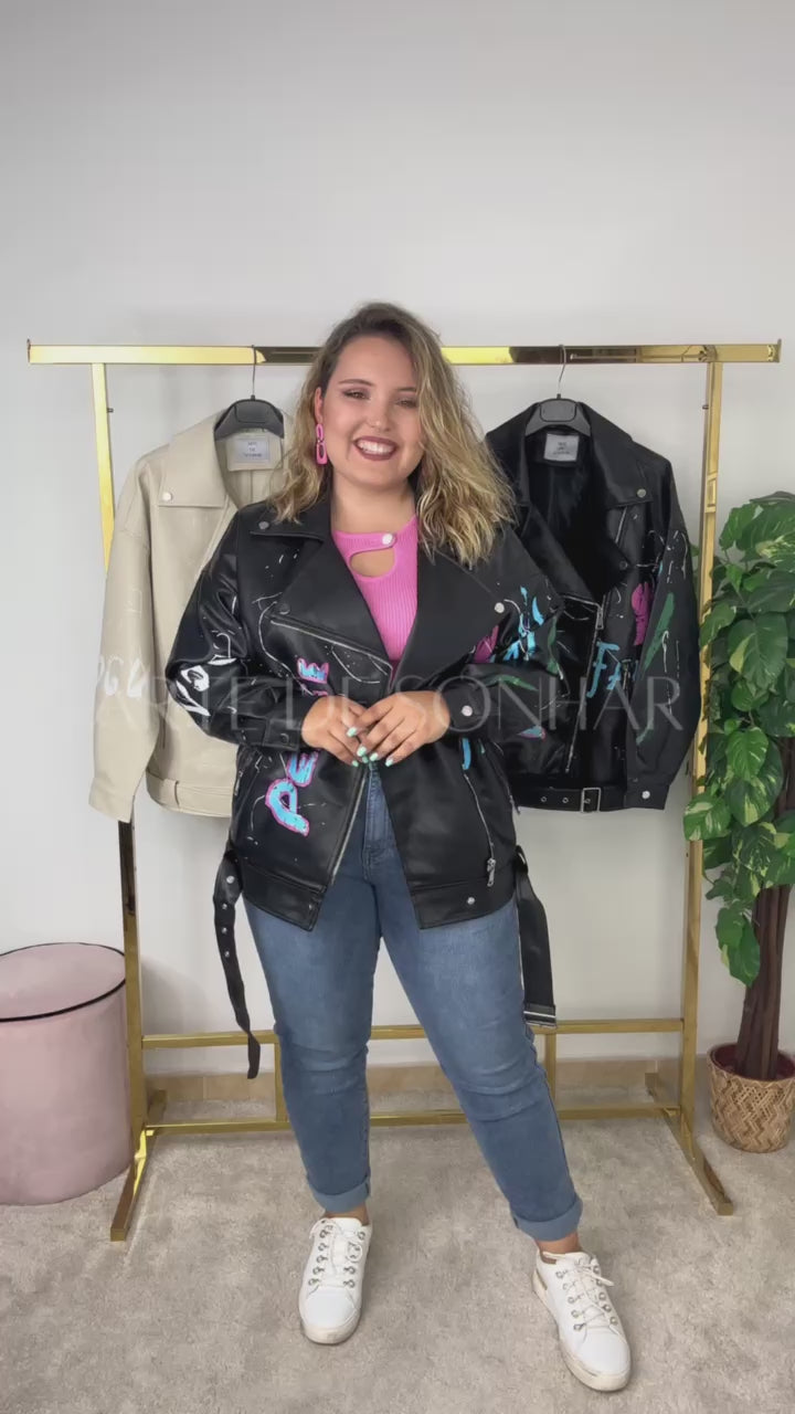 Casaco de napa oversize com pinturas