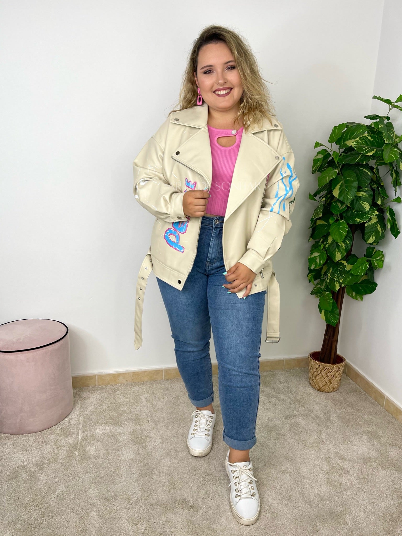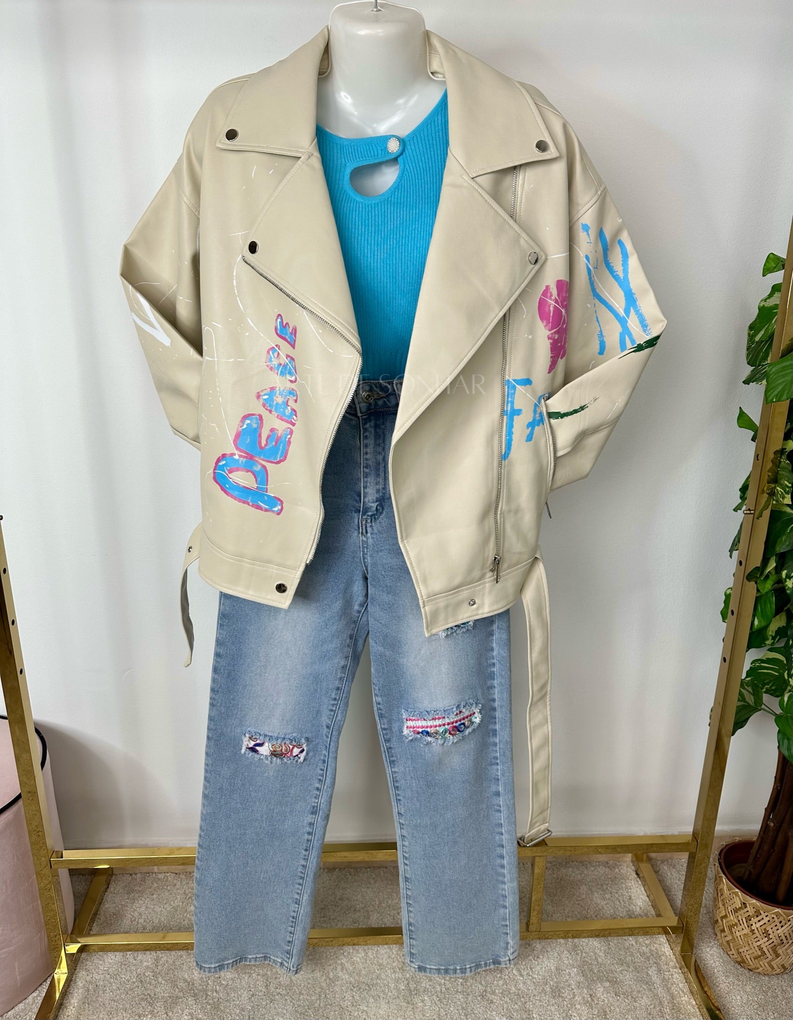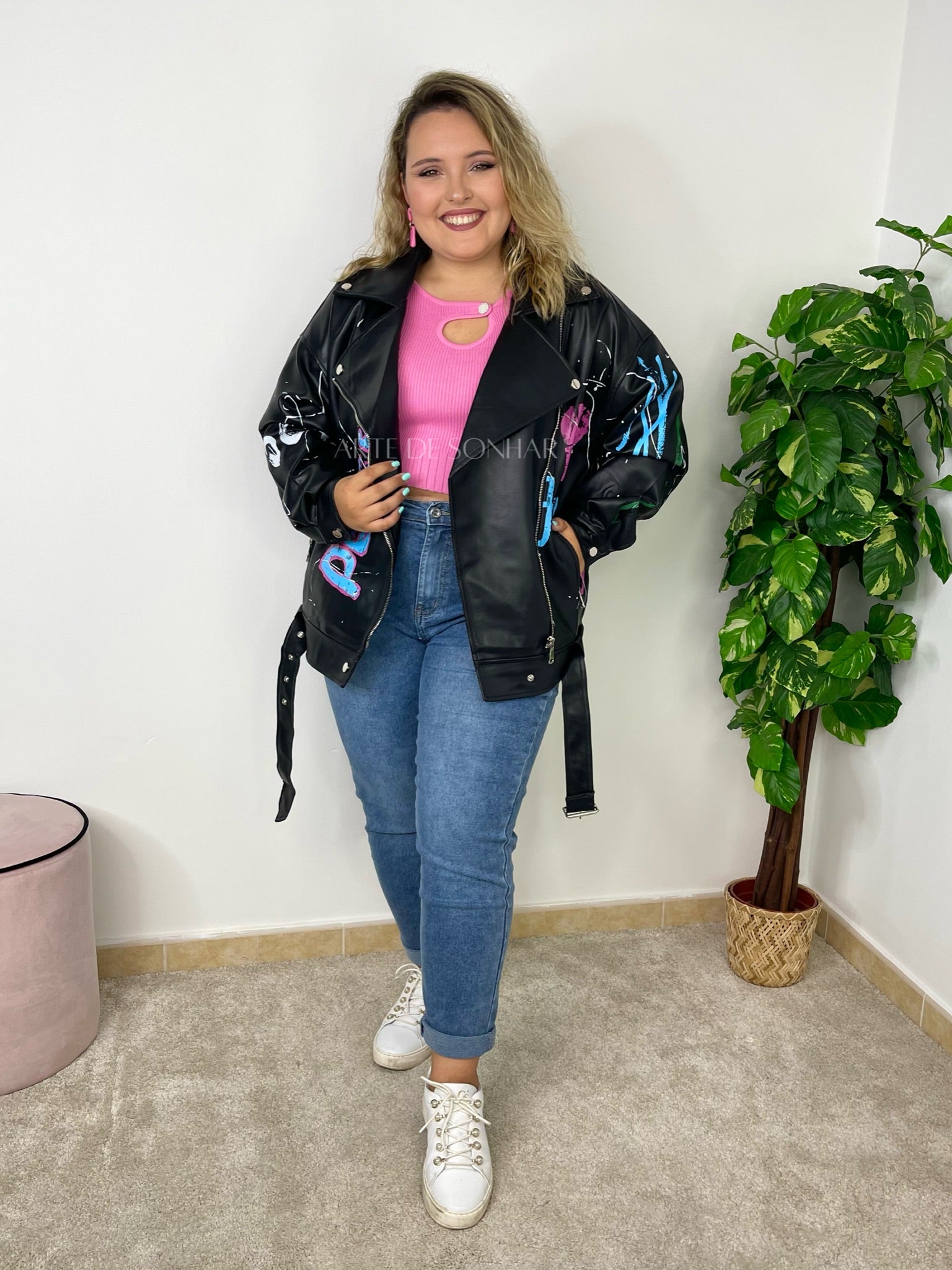 Casaco de napa oversize com pinturas