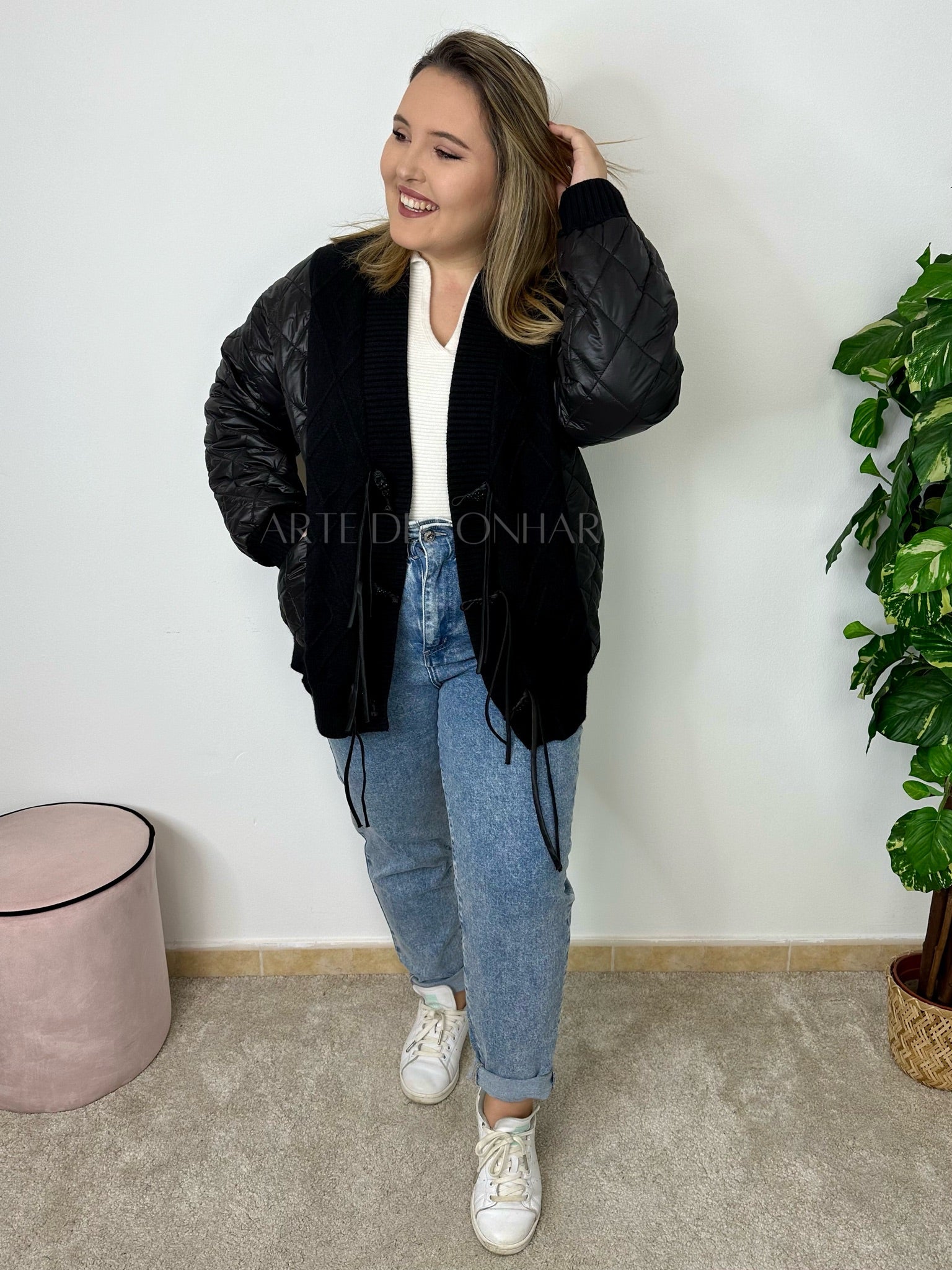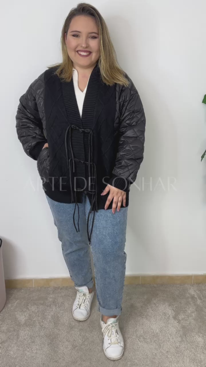 Casaco estilo kispo fininho com malha e fecho estilo cordão