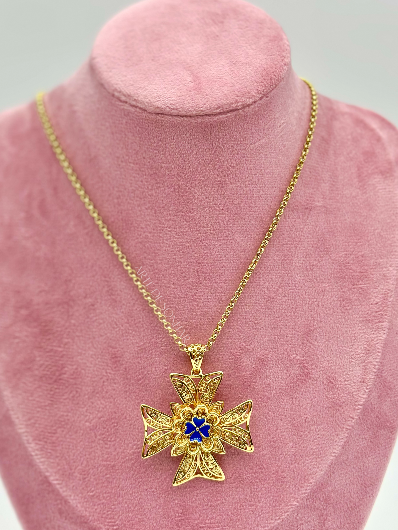 Colar Cruz de Malta com trevo azul M