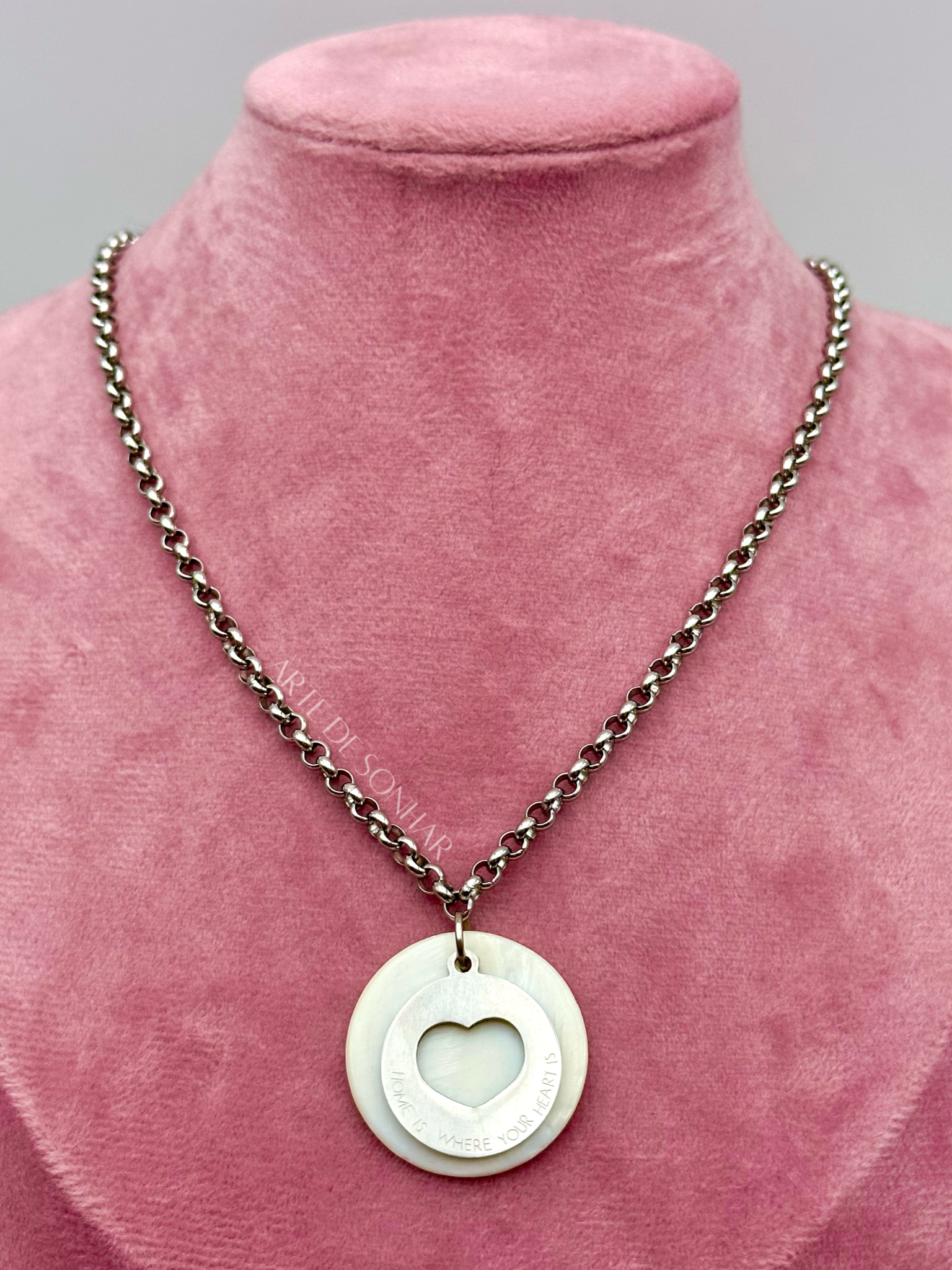 Colar do coração prateado e madre pérola