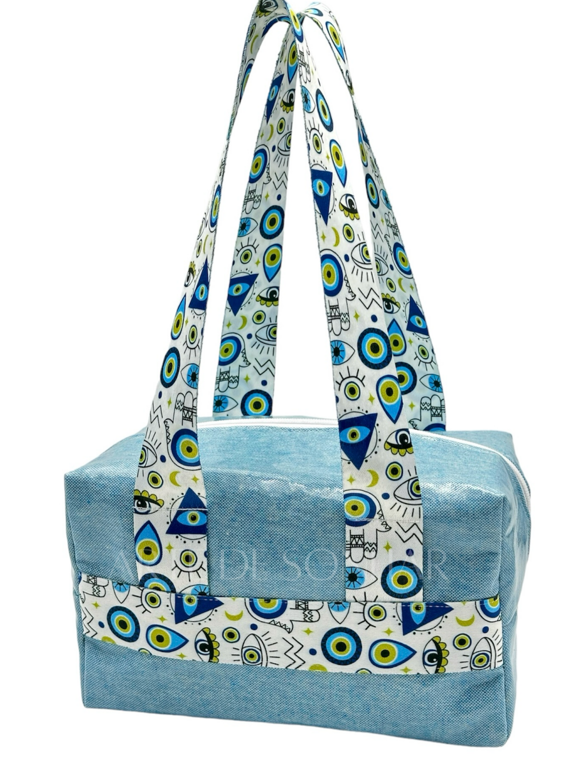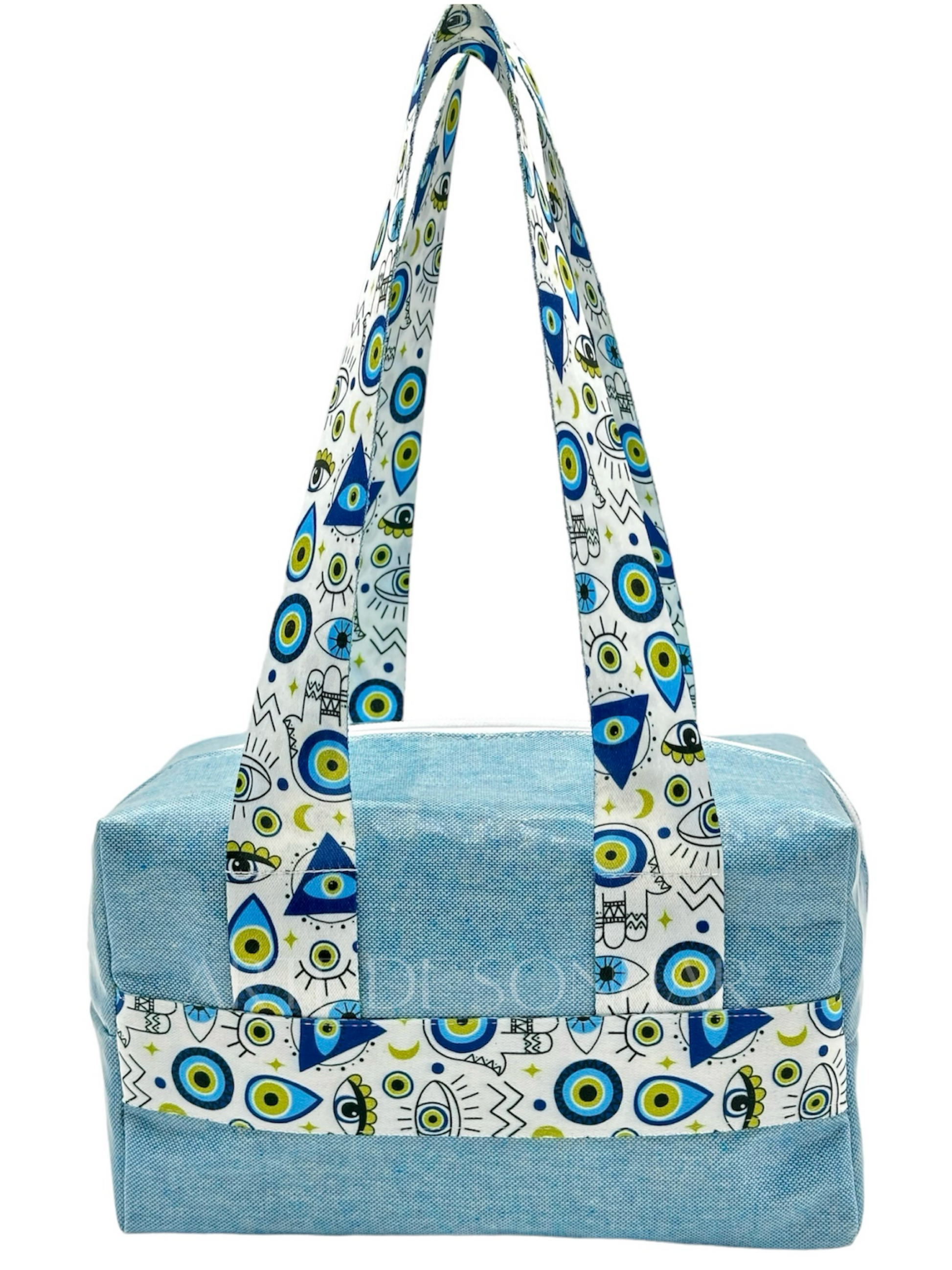 Lancheira térmica retangular M azul com olho turco e mão de fátima