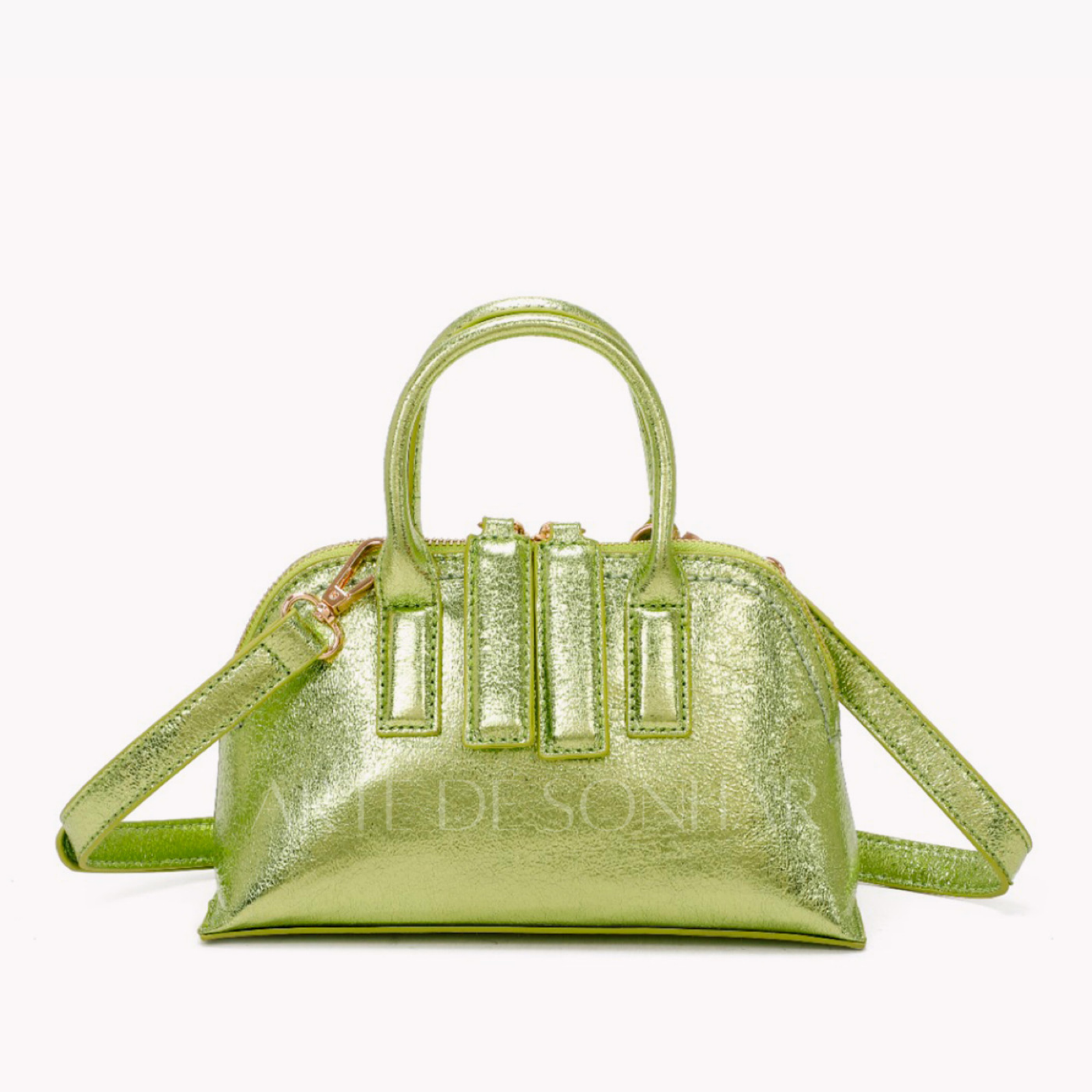 Mala de mão metalizada com alça à tiracolo verde