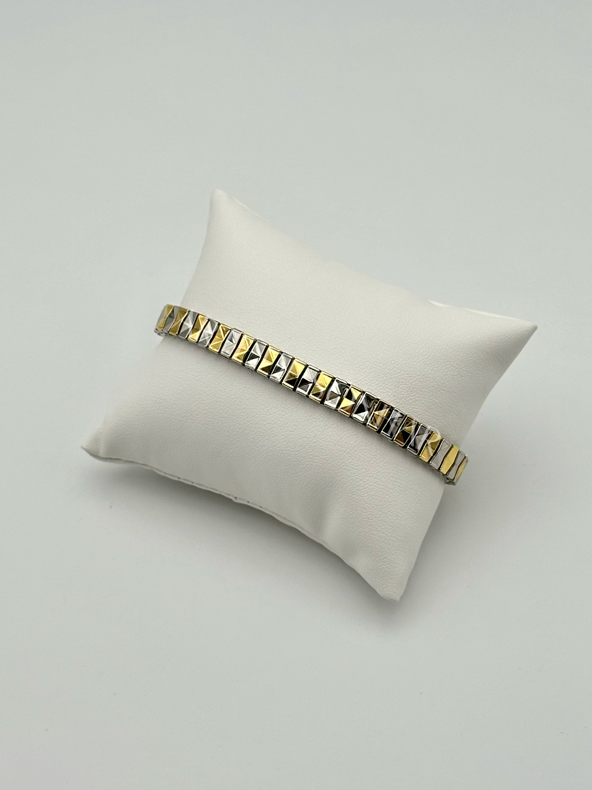 Pulseira prateada com dourados e efeitos triangulares