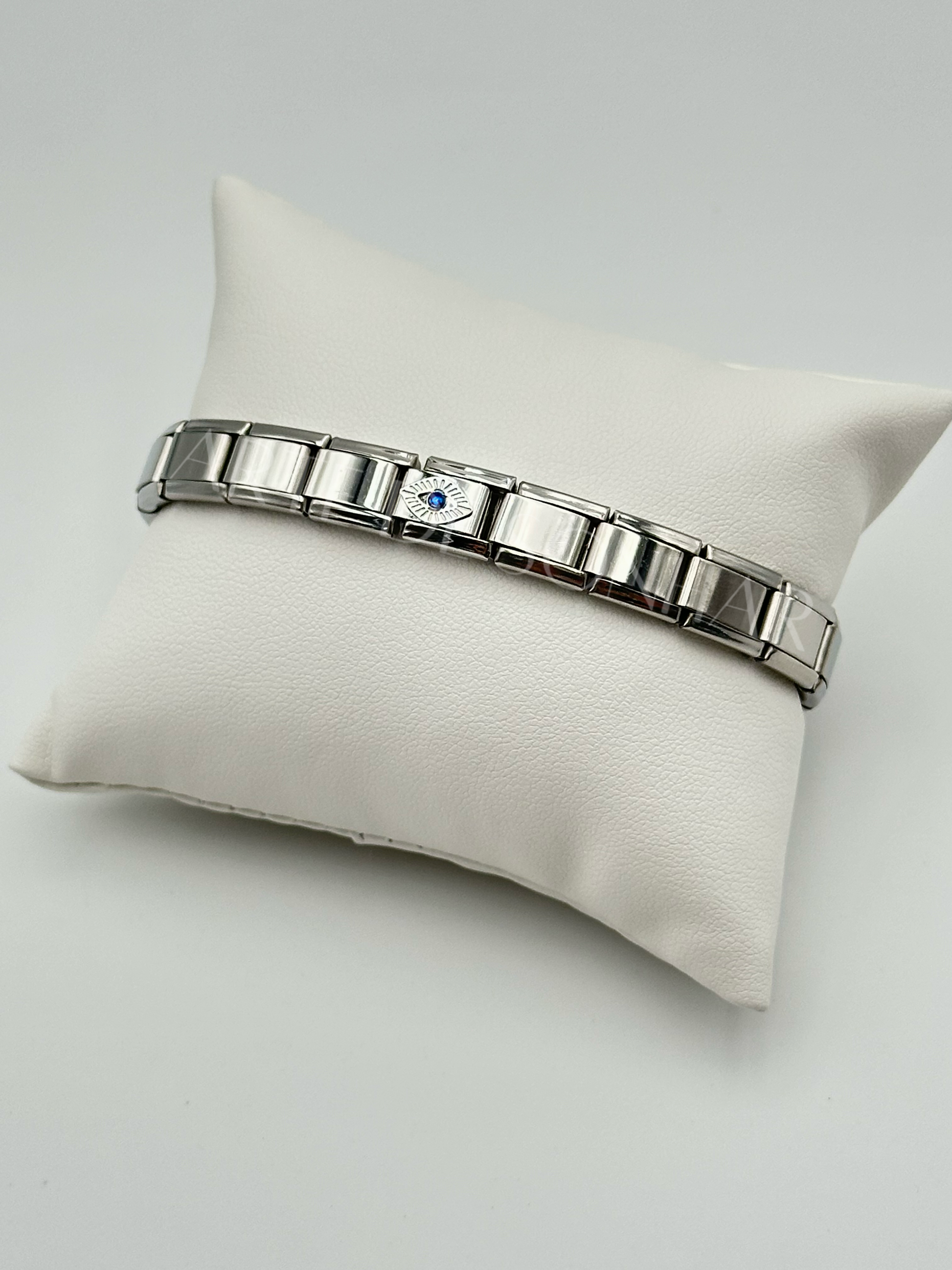 Pulseira Itália com olho prateado e cristal azul